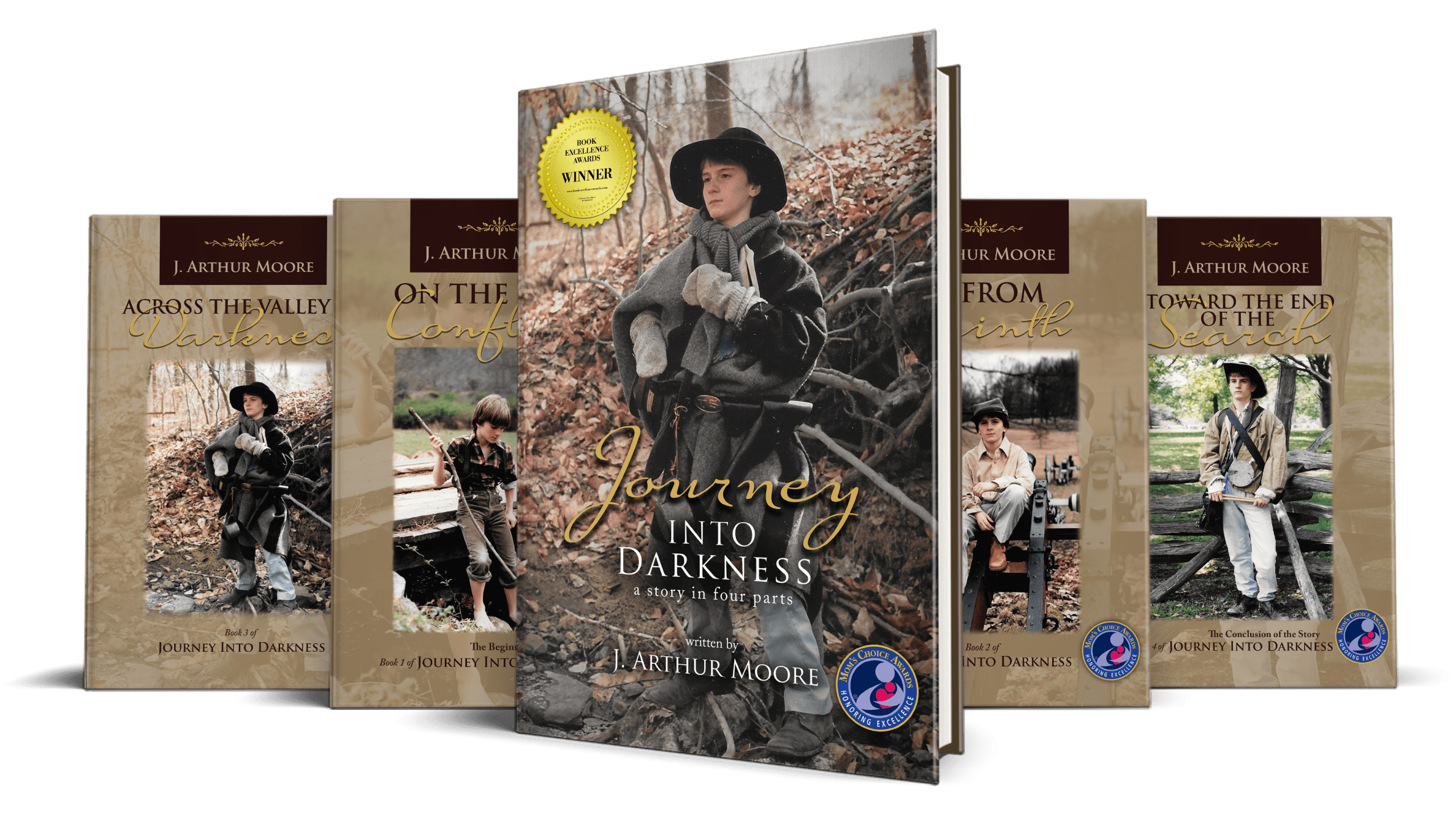 Journey Into Darkness, written from a boy’s point of view for middle grade through adult, is all at once a life-changing adventure, a gripping story of war, and a boy’s extraordinary coming-of-age. Out of unfathomable tragedy, comes an unforgettable tale of family, hope and what it means to be human. Researched for historic accuracy, Journey Into Darkness takes the young reader through the war with a peer. It takes the reader into battle on the ground with Duane as it unfolds, into life in the camp and on the road with the boy; and in this shared existence, the reader not only shares the life and times with the boy, but also learns a detailed history lesson without even realizing it. As one young reader, 14-year-old Isaac Sassa, writes, “I have learned a lot about the Civil War through your books. I find them a lot more exciting than a dry history textbook.” Reviewers concur. “This would be an excellent resource for middle-school American History classes, giving a boy’s eye view of the Civil War and reminding students that kids their own age were caught up in active duty during the war.” Blue Ink review, and “This book does have a place in schools, I think it would be the perfect adjunct to a Civil War class.” Simon Barrett, Blog News Network. [available as a 4-book series, B&W, or a 4-part novel comprising the complete series, B&W or color]